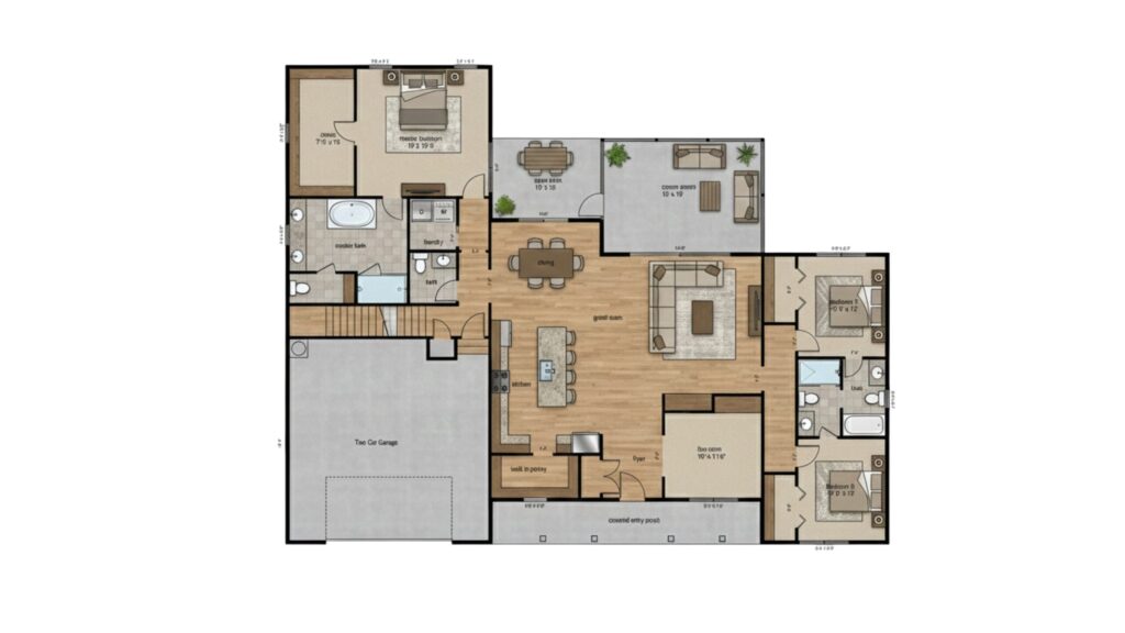 One floor living at its finest. This home features an open floorplan with the master suite on one side of the kitchen-dining-great room and guest rooms on the other. The home also features a walk-in pantry, flex room, screened porch, open deck and a two car garage. Under construction for $1,185,000.